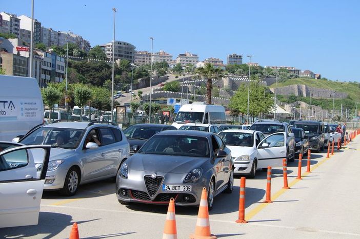 İlçede, gerek feribot iskelesi gerekse bağlantı yollarında bayram tatili yoğunluğu yaşanırken Bandırma ve Erdek ilçeleri arasında araçlar uzun kuyruklar oluşturdu.