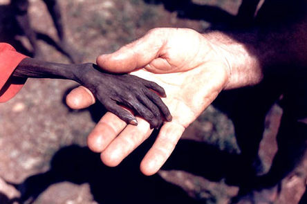 1980 Michael Wells tarafından çekilen bu fotoğrafta Uganda’da açlıktan ölmek üzere olan bir çocuk ve bir misyoner.