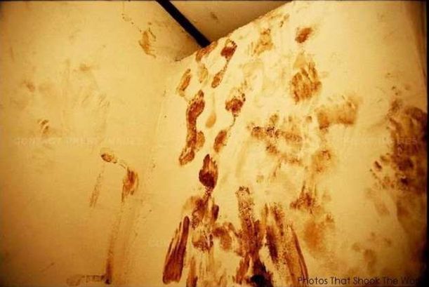 1994 yılındaki Ruanda Katliamı'nda pencereden kaçmak isteyen çocukların kanlı ayak izleri..