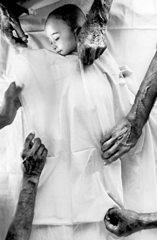 1984 yılında Pablo Bartholomew'in çektiği bu fotoğrafta Hindistan’da Union Carbide adlı ABD şirketinin kimyasal madde fabrikasından sızan zehirli gazların öldürdüğü bir çocuk.