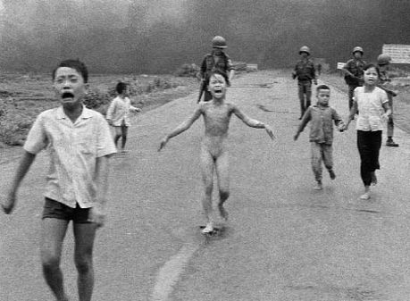 1972'de Vietnam'dan kalan en bilinen fotoğraflardan biri de Nick Ut tarafından çekilen bu karede Güney Vietnam uçakları yanlışlıkla napalm bombasını bir köyün ortasına düşürdü. Fotoğrafçı (şimdilerde herkesin tanıdığı) küçük kızın yanan kıyafetlerini “Çok sıcak” diye bağırarak üzerinden atmasını unutamadığını açıkladı.