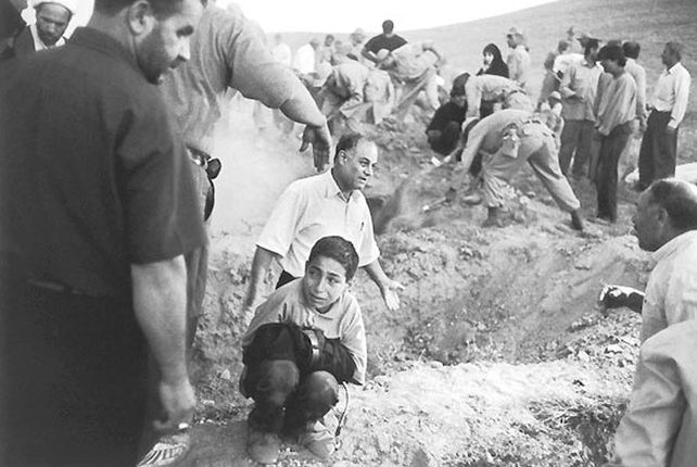 2002 Eric Grigorian tarafından çekilen bu fotoğrafra İran’da asker ve köylüler, depremde ölen kurbanlar için mezar kazıyorlar. Bir çocuk ise ölen babasının pantolonuna sıkı sıkı sarılmış, yanıbaşındaki boşluğa babasının gömülmesini bekliyor.