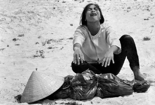 1972’de Horst FAAS tarafından çekilen bu fotoğrafta Kuzey Vietnam’da, bir Amerika Birleşik Devletleri uçağından atılan bomba sonrası ölen kardeşi için ağlayan küçük kız çocuğu görülüyor.