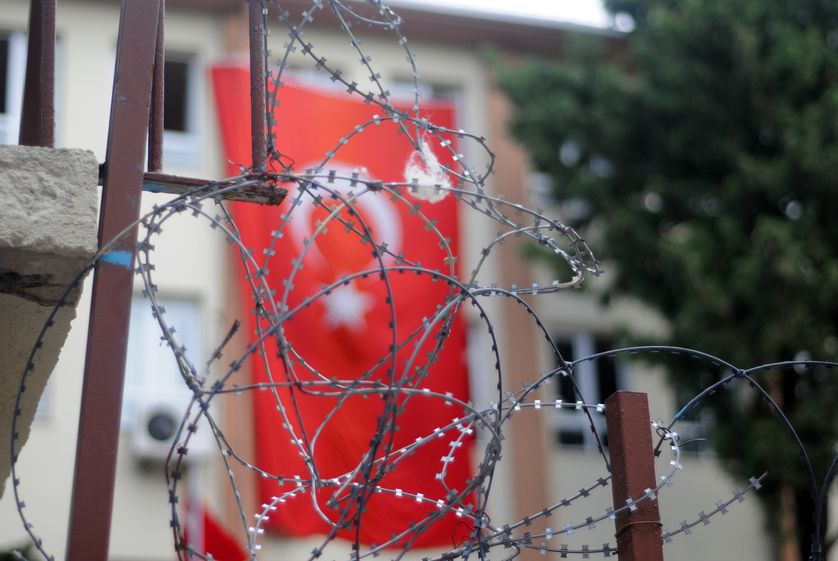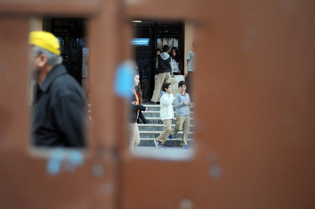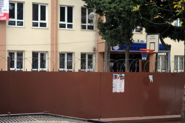 Dışarıdan bakıldığında bir hapishane görünümüne bürünen ortaokul demir bariyer ve jiletli tel örgü ile çevrili