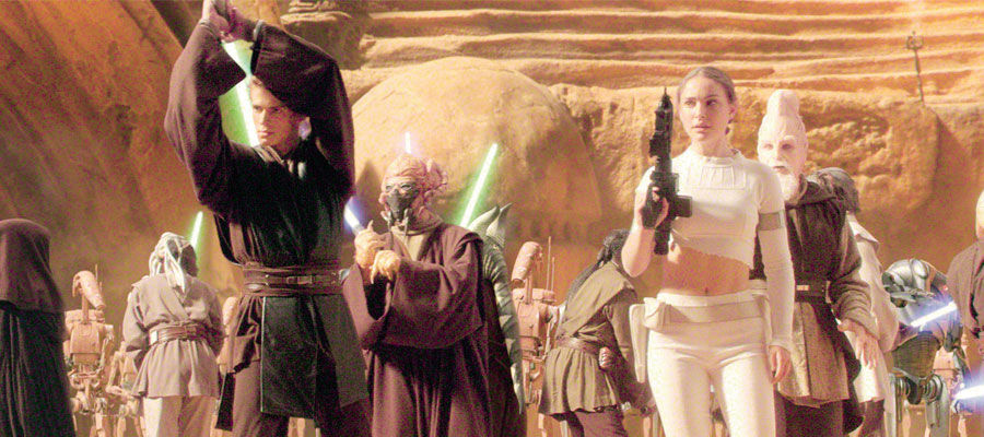 Lucas aksiyonun henüz bağımsız bir tür olarak rüştünü ispat etmediği bir dönemde çektiği ilk filmde hareketi vazgeçilmez öğe haline getirdi. Daha sonra da filmlerin öykülerini savaş, kaçış, takip, kılıç düellosu gibi aksiyon sahneleri üzerinden ilerletti. 1977’deki ilk filmden önce bilimkurgu uzayda gerçekleşen savaşları asla böylesine renkli ve hareketli bir biçimde tasarlayamamıştı. Lucas, uçakların gökyüzünde savaştığı filmlerden hareket etti ve gökdelenlerin arasındaki takip sahnelerinden başlayarak bir Star Wars estetiği oluşturdu.