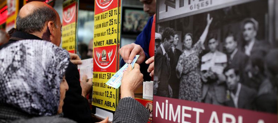 Nimet Abla, “Milli Piyango” denince ilk akla gelen isim. 1928’de İstanbul Eminönü’nde seyyar olarak başlayıp, kazandırdığı ikramiyelerle efsane olan Nimet Abla’nın aynı yerdeki merkez bayiinde yılbaşı biletlerinin satışa çıktığı 1 Aralık’tan bu yana kuyruk eksik olmadı.