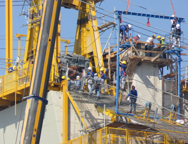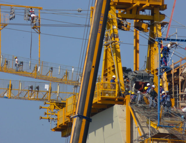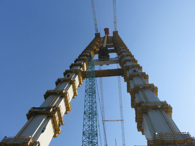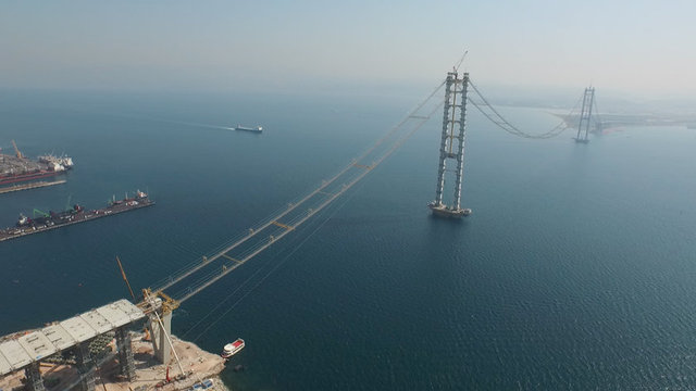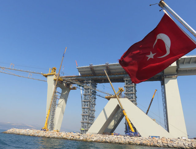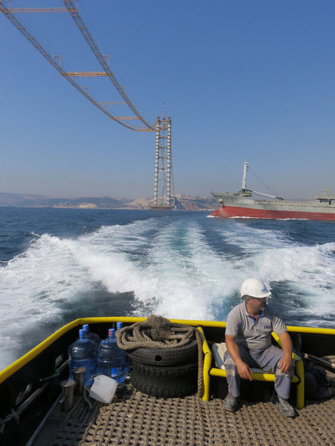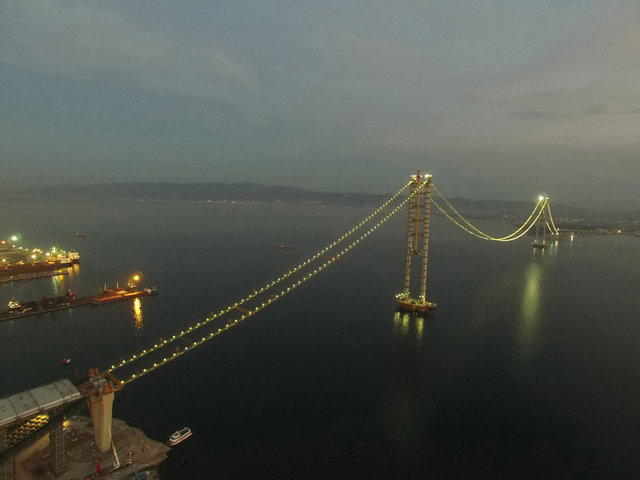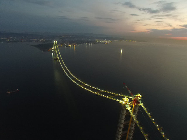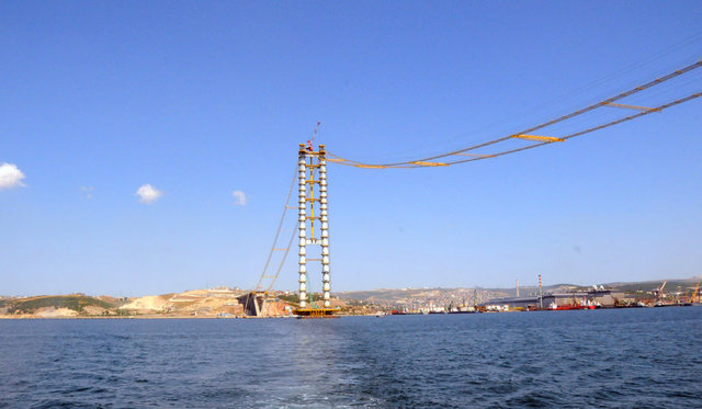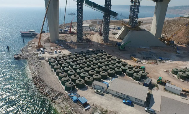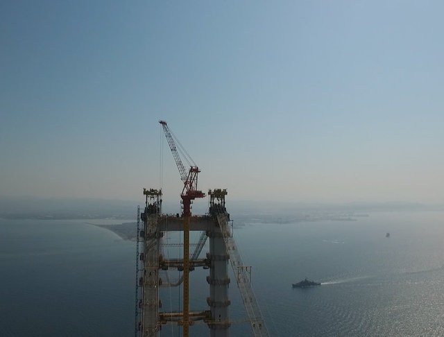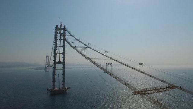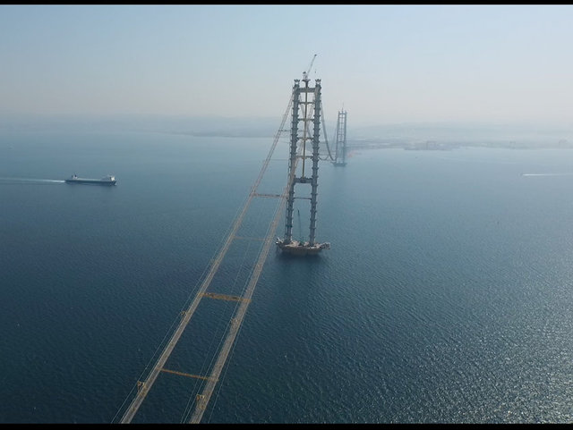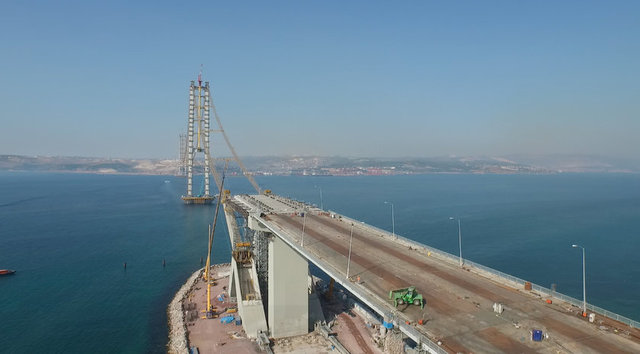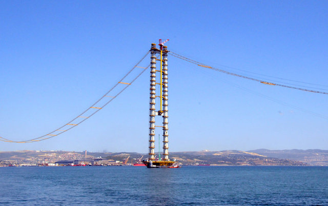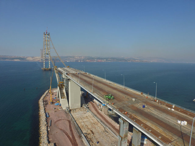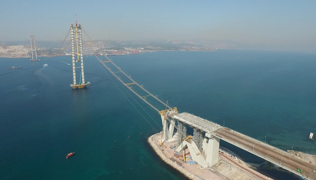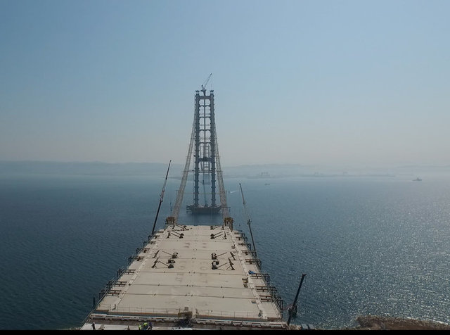Şu anda en ağırı 923 ton olan 59 çelik tabliyeden 42’sinin montaj ve kaynak işlemleri biterken, iki kıta arasındaki açıklık 391 metreye kadar indi.