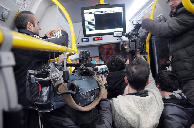 Yöneticilere ve futbolculara temsili olarak defalarca akbil bastırıldıktan sonra kulüp basın sözcüsü Levent Ayaz'ın televizyon kameralarının kendileri ile birlikte otobüste devam edebileceğini, gazete muhabirleri ve foto muhabirlerinin ya arkadaki otobüste ya da kendi araçlarıyla stada gelmelerini istediğini duydum.