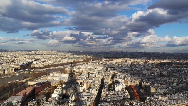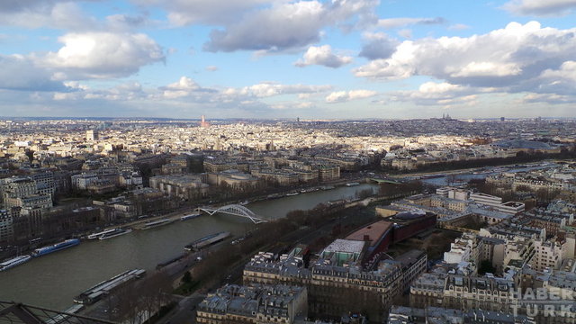 Louvre'dan çıkıp, Paris'le özdeşleşen kafelerinden birinde,verdiğimiz kahve molasının ardından, hızımızı hiç kesmeyip, Eyfel'e doğru yola çıkıyoruz. Eyfel Kulesi'ni daha önce de ziyaret etmiştim, ama, kuleye çıkmamıştım. Bu yüzden, Paris'i kuşbakışı göreceğim için ben de, ilk kez ziyaret ediyormuş gibi hissetmedim değil. Biletlerimizi aldıktan sonra (bilet 11 Euro) asansörlerle kuleye çıkıyoruz. Evet, Paris, buradan bir başka güzel görünüyor, kabul ediyorum.