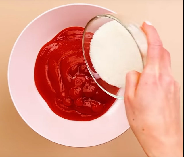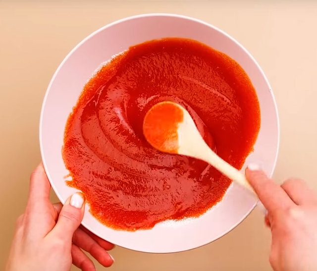 Ayak tabanını pürüzsüzleştiren bu karışım için öncelikle bir kaseye ketçap sıkın.