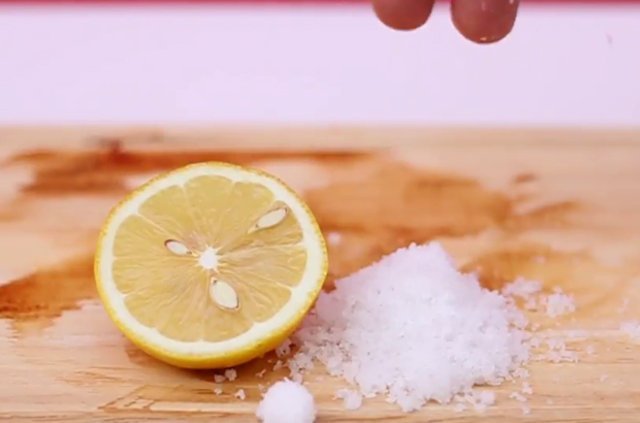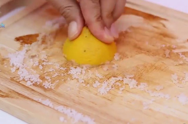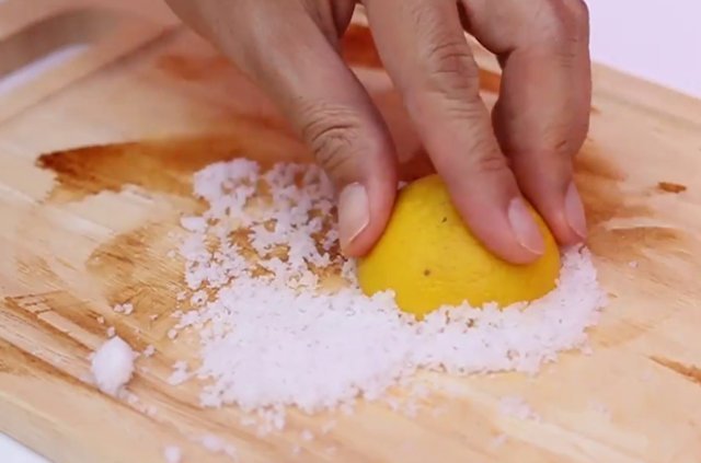 Doğrama tahtasının kirini temizlemek için bir limon ve tuz işinizi görecektir.