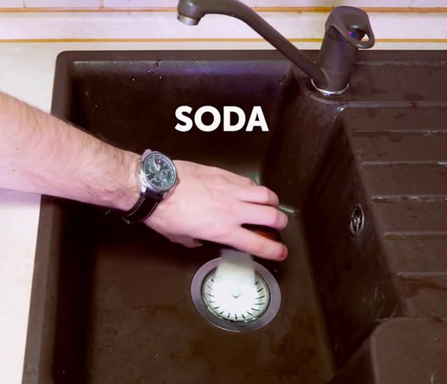 Soda ve limon tıkanmış lavaboyu açmak için zahmetsiz ve ucuz bir çözümdür!