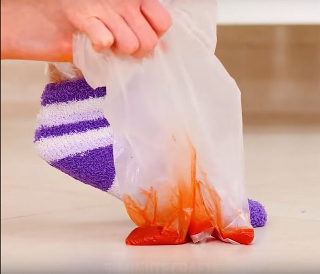 Şekerli ketçapı bir poşete döktükten sonra ayağınızı karışıma yerleştirin ve mümkünse üzerine çorap giyin.