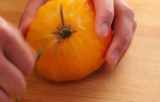 Eğer domatesi ters çevirirsek sulu kısım koparılan kısma iner ve domatesin her bölgesi sulu ve tatlı olur.