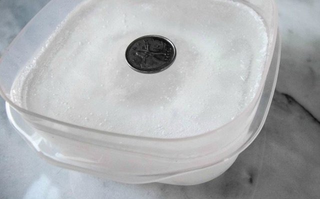 Evden çıkmadan önce dondurucunuza su dolu bir bardak bırakın. Su donduktan sonra ise donmuş buzun üzerine madeni para koyun.