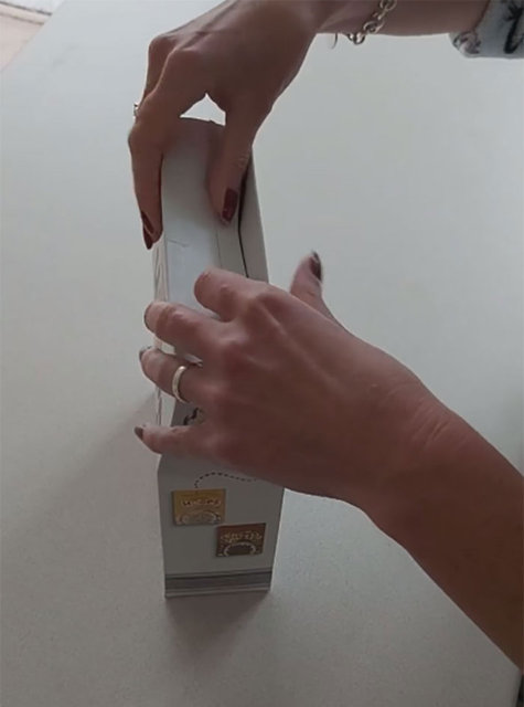 Daha sonra kutunun içine hava girmesini önlemek için yanlarını sıkıştırdı.