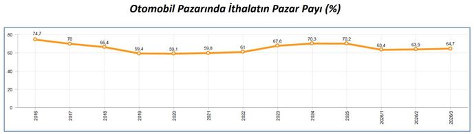 OSD raporuna göre, Ocak-Mart ayında otomobil pazarında ithalatın payı yüzde 64 olarak gerçekleşti. Bu dönemde, toplam otomobil satışları yüzde 6, ithal otomobil satışları yüzde 11 azalırken, yerli otomobil satışları yüzde 6 oranında arttı.