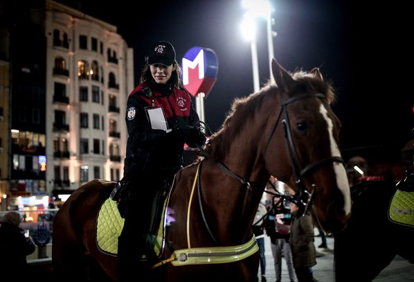 Yeni yıla Taksim’de girmek isteyen vatandaşların huzur ve güvenliğini sağlamak için Taksim ve İstiklal Caddesinde tedbirler alındı. Atlı polisler de Taksim Meydanı’nda görev aldı.