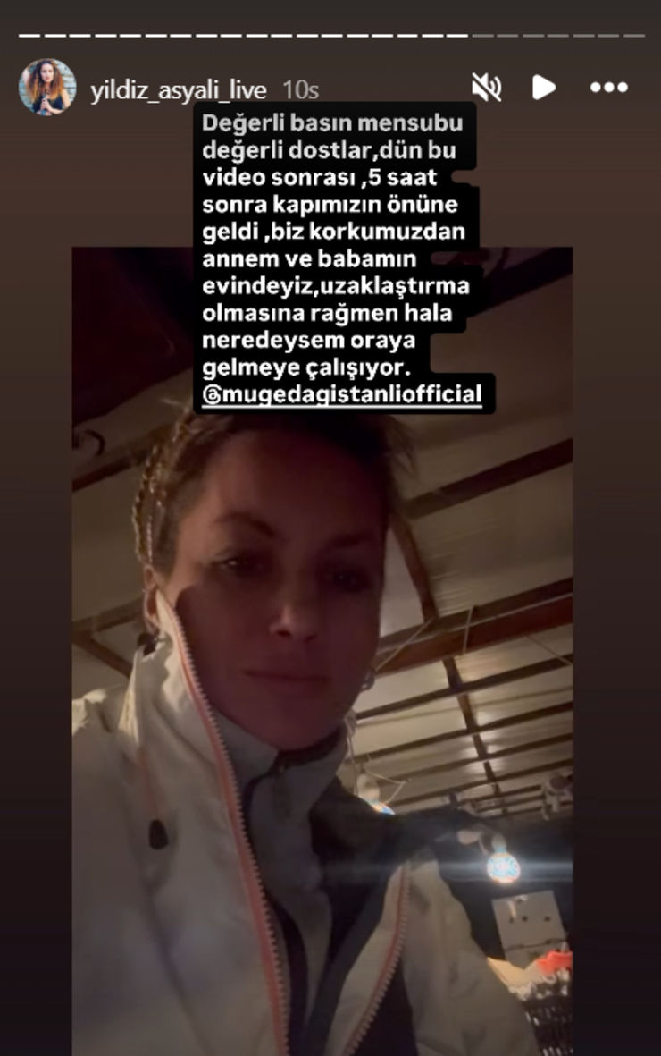 "Değerli basın mensupları, değerli dostlar… Dün bu video sonrası, yaklaşık 5 saat sonra kapımızın önüne geldi. Korkumuzdan annem ve babamın evindeyiz. Uzaklaştırma kararı olmasına rağmen hâlâ neredeysem oraya gelmeye çalışıyor."