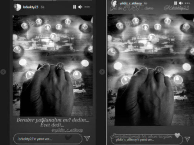 Atiksoy ise, mutluluğunu, "Gel de 'Evet' deme... Sonsuzluğumuz bir olsun sevgilim" sözleriyle ifade etmişti. Çifte takipçilerinden çok sayıda "Mutluluklar" mesajı yağmıştı.