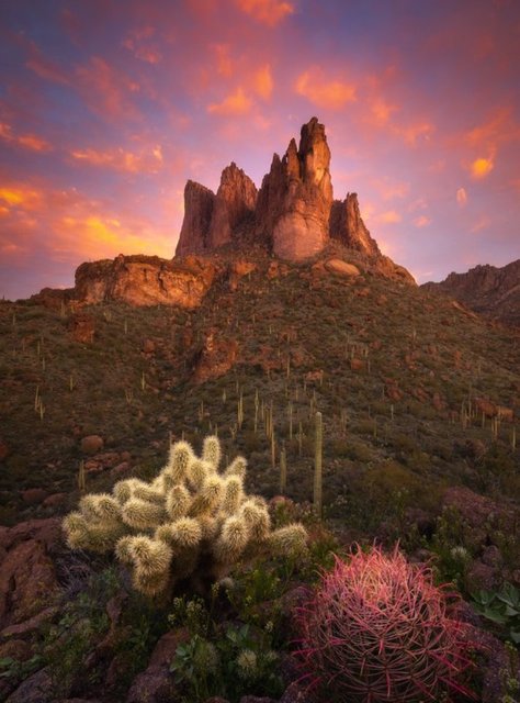 Arizona'da yer alan Sonoran Çölü'ndeki Superstition Dağları'ndaki gündoğumu manzarası "En İyi Arazi" kategorisinde birinci oldu.