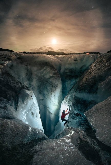 "Sınırda" fotoğrafıyla kategorinin birincisi olan Virgil Reglioni, çekimi Güney İzlanda'nın Vatnajökull bölgesinde gerçekleştirdi.