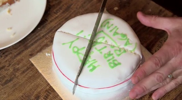 Pastaları eşit ve dağıtmadan kesemeyenlerdenseniz bu yöntem tam size göre. Önce pastanızın ortasındaki parçayı kesin ve kenara ayırın. Daha sonra bu iki parçayı sıkıştırın.