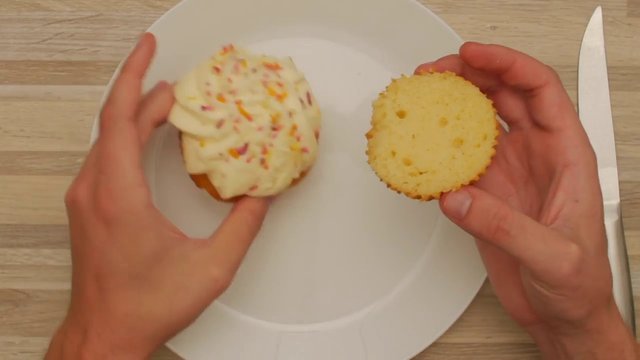Ve bir parçasını cupcake’in üzerine yerleştirin.