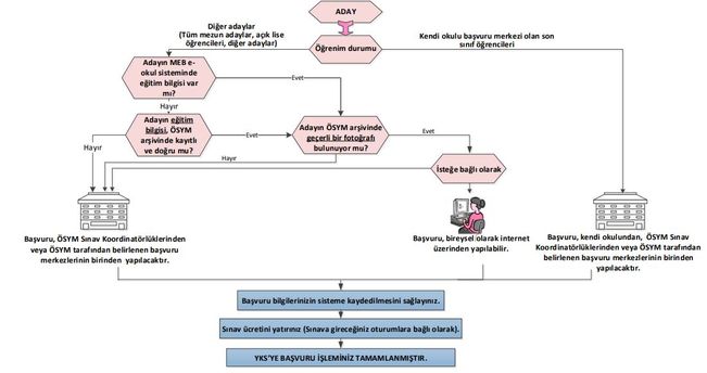 - Bir ortaöğretim kurumunun son sınıfında öğrenim gören adaylar; başvurularını kendi okullarından, ÖSYM Sınav Koordinatörlüklerinden veya ÖSYM tarafından belirlenmiş olan başvuru merkezlerinden yapacaklardır.