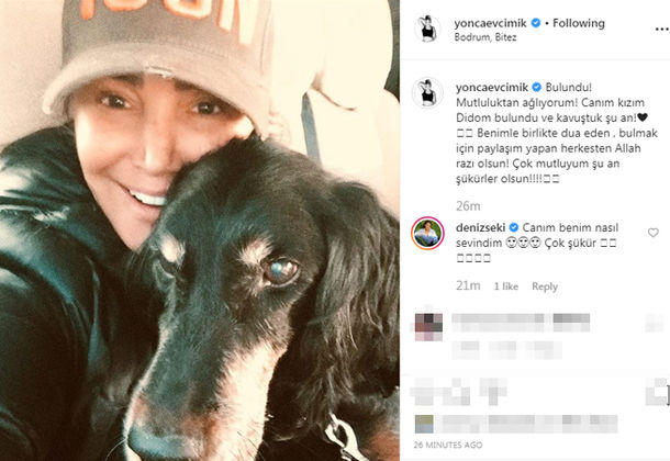 Uzun süredir yaşamını Bodrum'da sürdüren 56 yaşındaki Yonca Evcimik, 5 Ocak'ta köpeği 'Dido'nun kaybolduğunu Instagram'dan duyurmuştu. Evcimik, dokuz gün sonra sosyal medya hesabından "Mutluluktan ağlıyorum" notuyla takipçilerine müjdeli haberi verdi.