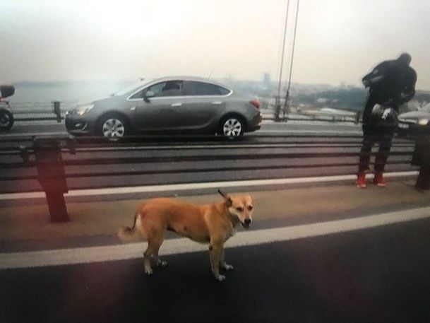 Dün akşam 17.00'da iş yerinden çıkarak Kadıköy'e giden Erdem Demirel, 15 Temmuz Şehirler Köprüsü üzerinde yolunu şaşırmış bir köpek gördü.