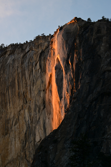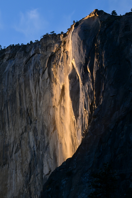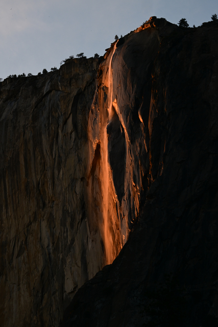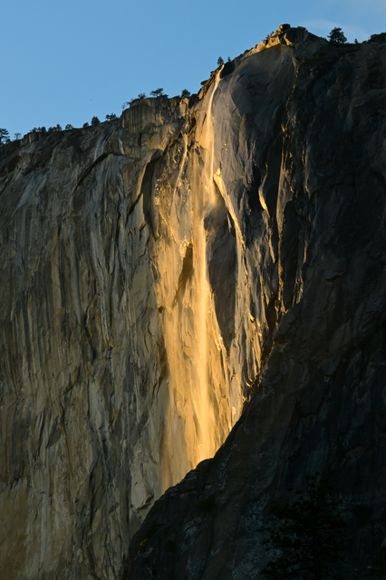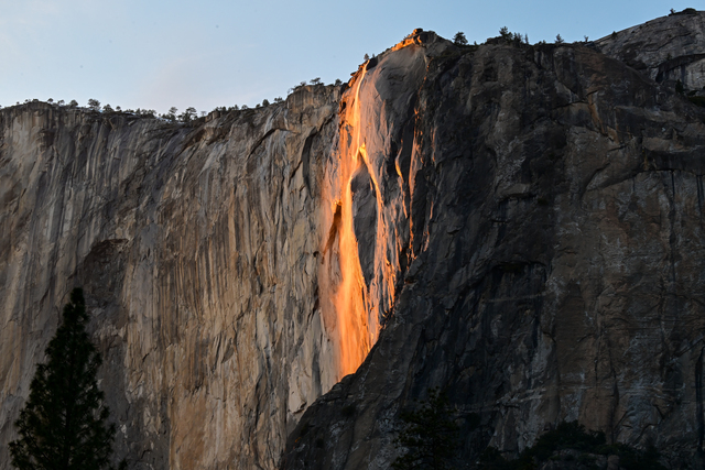 Gün batımı sırasında güzel görüntüler oluşturan El Capitan üzerindeki Horsetail Şelalesi, bu dönemlerde 'Ateş Şelalesi' (Firefall) olarak anılıyor.