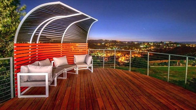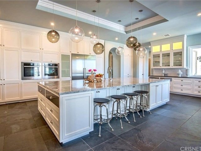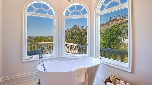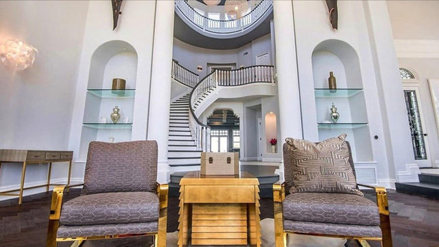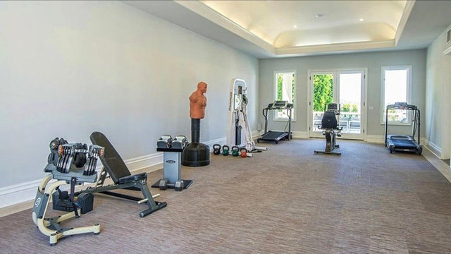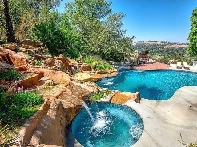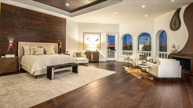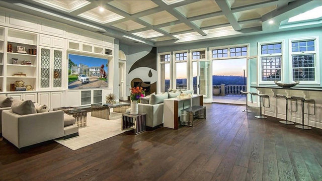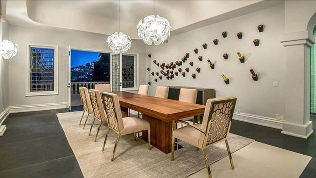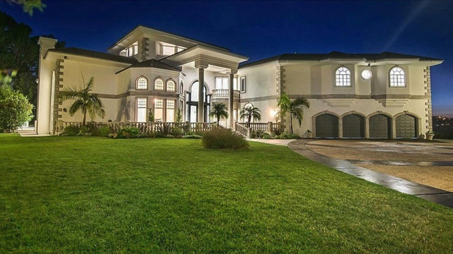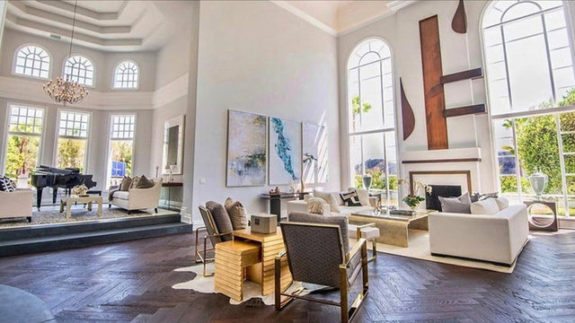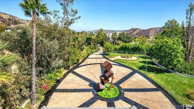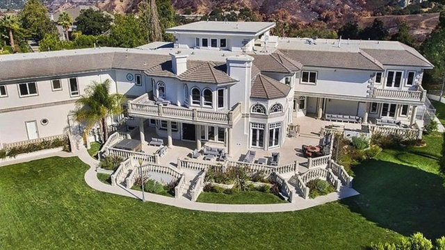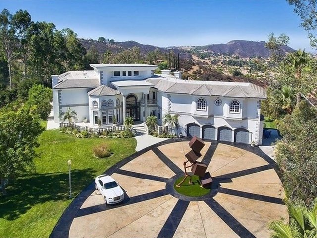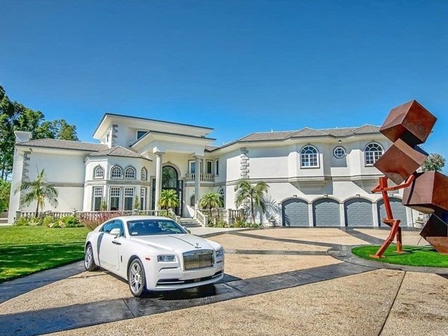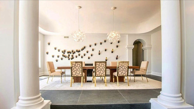 Havuzu, arka bahçedeki iki şelaleli peyzajı ve 4 araç ve 12 motor alabilen garajıyla birlikte ev neredeyse 14 bin metrekare araziye yayılıyor.