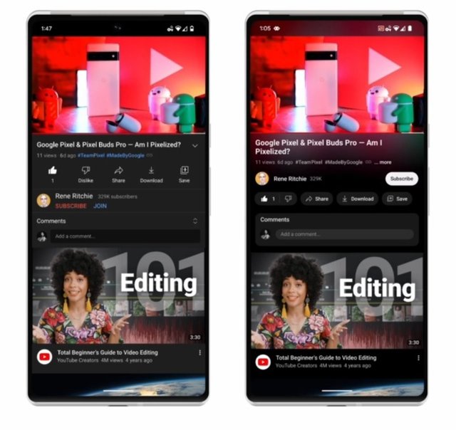 Haftalarca süren testlerden sonra YouTube, uygulamanın arka plan renginin izlediğiniz videodaki renklere uyum sağlaması için "dinamik renk örneklemesi" kullanan yeni bir ortam modu sunuyor.