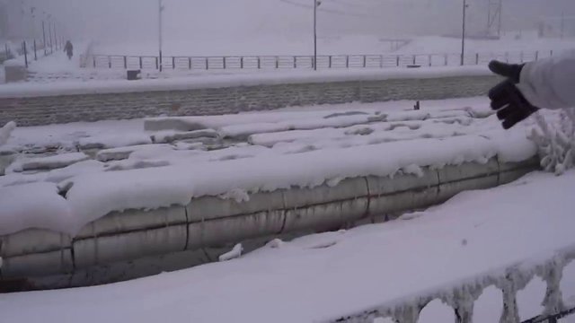 Kentte doğalgaz boruları yüzeyden geçiriliyor. Çünkü şehir buzlarla kaplı olduğundan yerin altına boru döşemek imkansız.