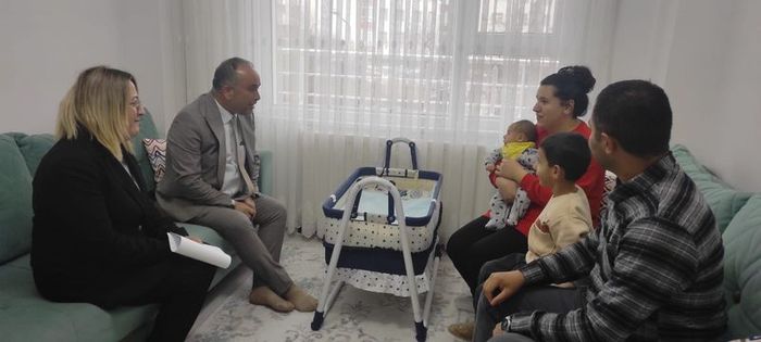 Proje çerçevesinde 3 Ocak 2025'te doğan Oğuzhan Bebek ziyaret edildi. Aile ile sohbet eden, taleplerini dinleyen Aile ve Sosyal Hizmetler İl Müdürü Arif Topal, bebek için hazırlanan hediyeleri takdim etti.