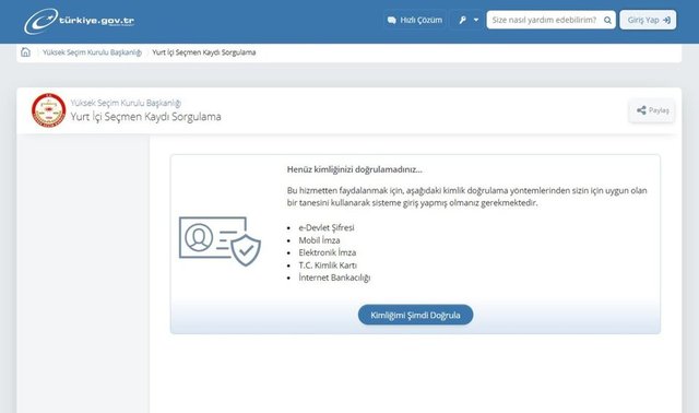 Ayrıca seçim dönemlerinde oy kullanacağınız yer bilgileri Yüksek Seçim Kurulu tarafından bu sayfada görüntülenir.