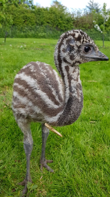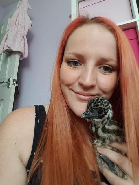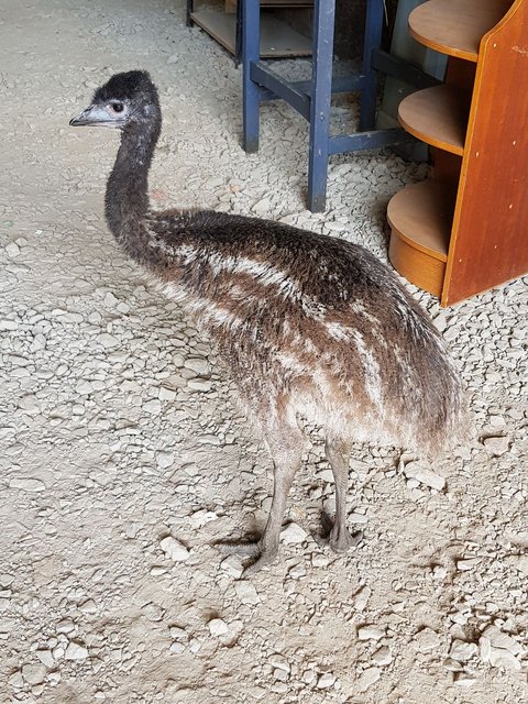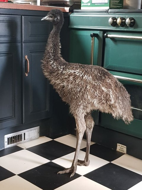 Kuş, yumurtadan çıktıktan yaklaşık 6-7 hafta sonra böyle görünüyordu. Çiftçi aile, giderek büyüyen sevimli canlı ile birlikte seyahat bile etti.
