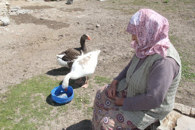 "Kuluçkaya yatan kazlara daha özenli bakıyoruz, her sabah gidip yemini, suyunu veriyoruz, yumurtaları ve yuvayı kontrol ediyoruz. Kazların yavruları 1 ayda yumurtadan çıkıyor ve yavruları 10-15 gün evde besliyoruz, sonra dışarıya çıkarıp otlatmaya başlıyoruz. Yavrulara üşümesinler diye bebek gibi bakıyoruz. Yavruların altlarına saman, elbise koyuyoruz, bebeğe nasıl mama veriliyorsa bizler de onlara mama hazırlayıp veriyoruz."