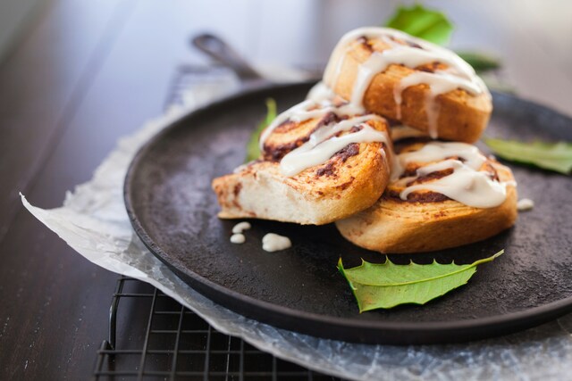 Orta boy bir kapta krem peynir, tereyağı, tam yağlı süt, vanilya özü ve pudra şekerini pürüzsüz bir kıvam alana kadar çırpın. Fırından çıkan sıcak çöreklerin üzerine hazırladığınız krem peynir sosunu gezdirin.