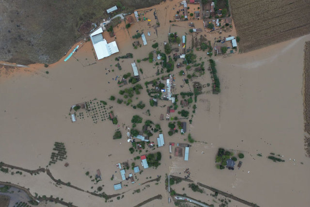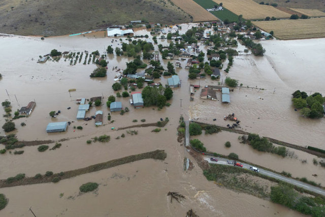 Su baskının yaşandığı Teselya Bölgesi görüntülendi. Bölgede, çok sayıda köy sular altında kaldı.