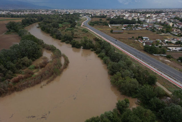 Yunanistan'da 5 Eylül'den bu yana devam eden şiddetli yağışların yol açtığı sellerde yaşamını yitirenlerin sayısı 6'ya yükseldi. Su baskının yaşandığı bölge havadan görüntülendi.