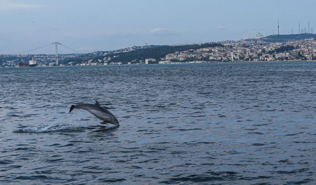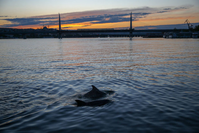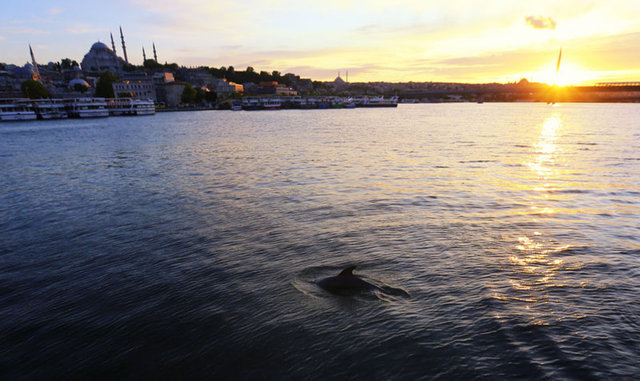 İlkbaharda balıkların Marmara Denizi'nden Karadeniz'e doğru göç etmelerine koronavirüs tedbirleri kapsamında deniz trafiğinin de azalmasıyla birlikte İstanbul Boğazı'nda yunusların görünülürlüğü arttı. İstanbul Boğazı'nın çeşitli noktalarında son günlerde sık sık kendilerini gösteren sevimli yunuslar son olarak Haliç'te belirdi. Yunuslar, günbatımı ile birlikte eşsiz görüntüler oluşturdu. İşte Boğaz ve Haliç'teki o kareleri...