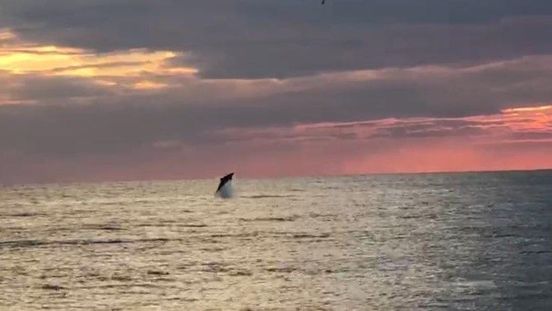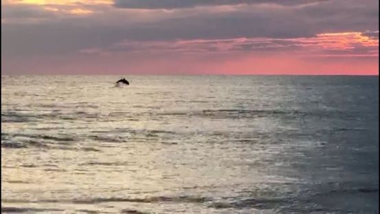 Yunusların gün batımı eşliğinde gösterisi hayran bıraktı