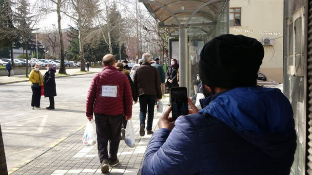 Memiş'in HES koduyla dolaştığını görenler o anı cep telefonuyla kaydediyor.