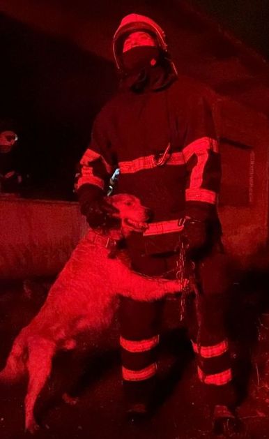 Soğutma çalışması sırasında binadan köpek sesi geldiğini duyan ekipler, içeriye girerek hayvanı dışarıya çıkardı.