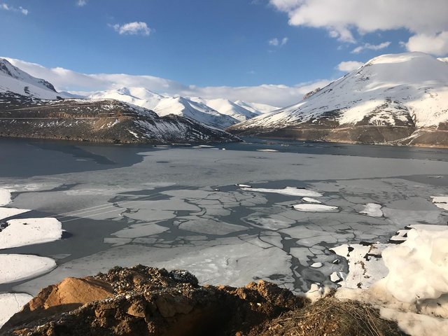 Çelikhan Belediye Başkanı Mustafa Bulut, yaptığı açıklamada, ilçede etkili olan soğuk hava nedeniyle yüzen adaların donduğunu söyledi.