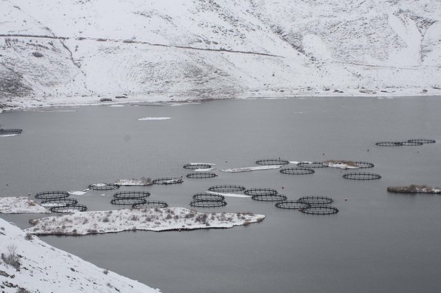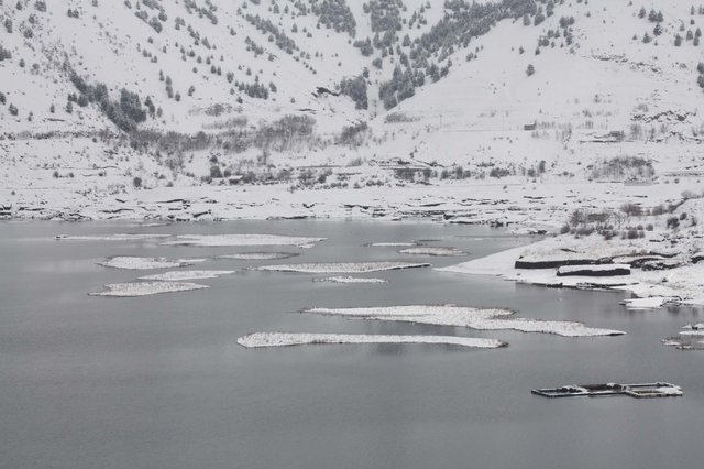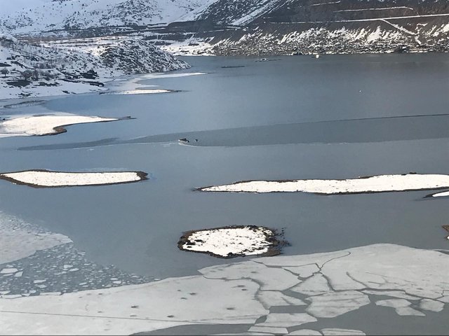 Adıyaman'ın Çelikhan ilçesindeki Çat Barajı'nda bulunan yüzen adalar, hava sıcaklığının sıfırın altına düşmesi üzerine buz tuttu