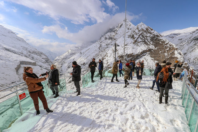 Sabahattin Ertuş da şehrin gürültüsünden uzaklaşmak için seyir tepesine gelerek güzel zaman geçirdiğini belirterek, "Buranın muazzam bir görüntüsü var. Seyir tepesi, Sümbül Dağı, Zap Vadisi ve şehrin görülebileceği bir yere kurulmuş. İnsanlar buraya gelerek manzarayı fotoğraflıyor. Gerçekten çok güzel bir yer. Zap Vadisi kuşbaşı izlenebiliyor. Karla kaplı dağlarla efsane bir görüntü ortaya çıkıyor" ifadelerini kullandı.