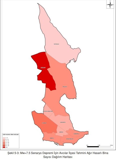 Fotoğrafta, 2019 yılında İBB tarafından hazırlanan grafikte, olası bir 7,5 büyüklüğündeki depremde ağır hasar alacak binalar gösteriliyor; Avcılar'ın neredeyse tamamında binalarda ağır hasar bekleniyor. Üstelik grafik, bina kalitesinden bağımsız olarak yapılmış bu da zeminin, deprem karşısında ne derece önemli olduğunu vurguluyor.